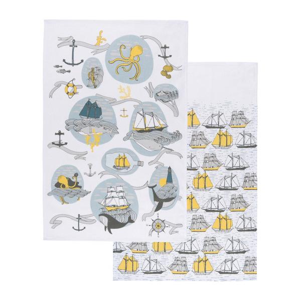 De theedoeken hebben elk een eigen print en met aangehecht ophang-lusje; wasbaar op 40°C. Formaat: 70 x 50 cm