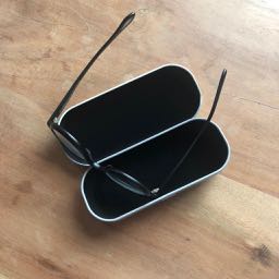 Brillenkoker van Catseye London met afbeelding et een afbeelding van afdalende skiërs.