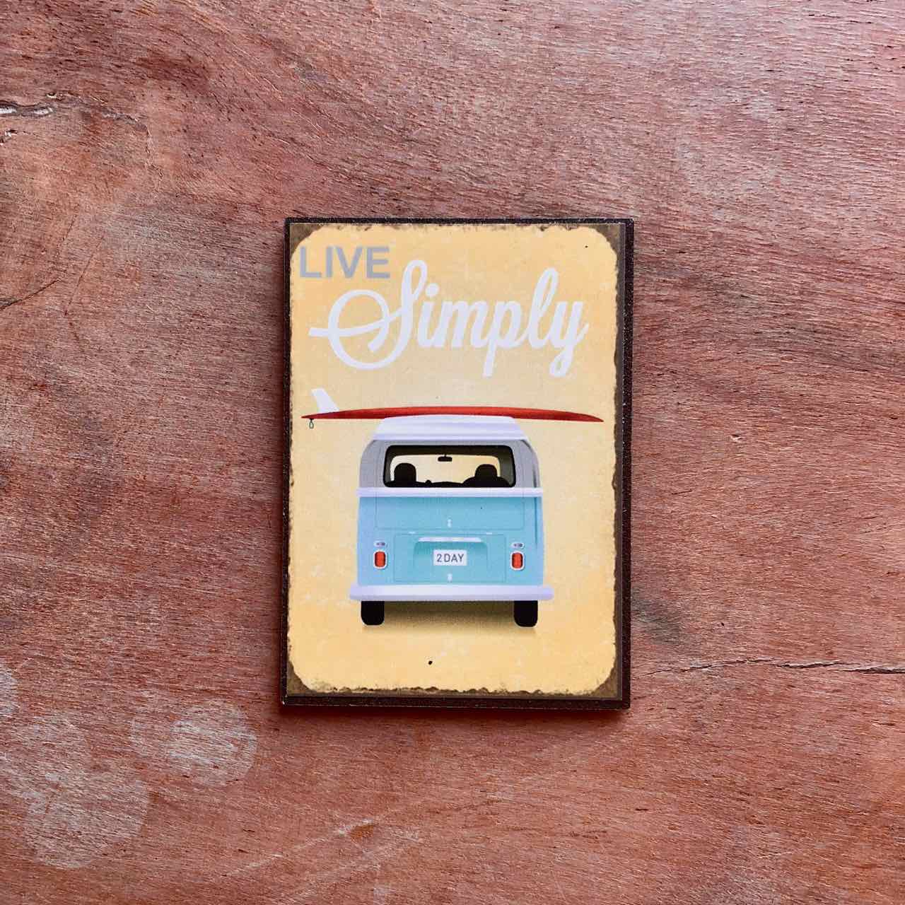 Live simply surf magneet met afmeting van 7 cm bij 5 cm. Leuk voor koelkast of whiteboard.