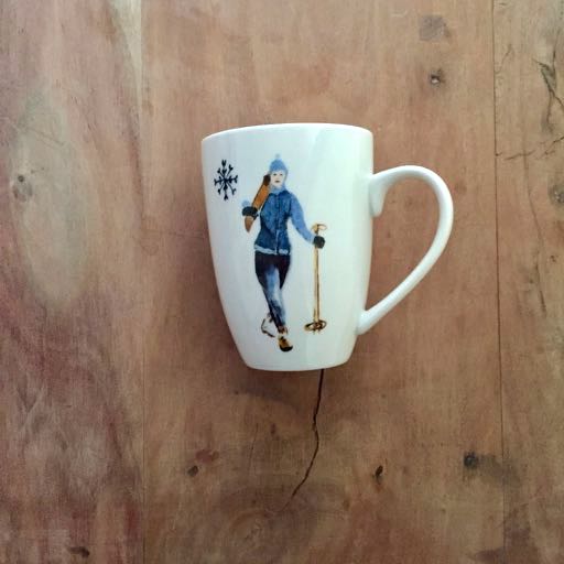 mok met vrouw en ski’s – skicadeau van sportcadeautjes. Grote mok met vrouw en ski’s uit de collectie van Chehoma. De afbeelding is vintage in blauwe tinten. Ideaal voor thee of warme chocolademelk na een mooie dag buiten. Deze skibeker kan in de vaatwasser en is magnetronbestendig.