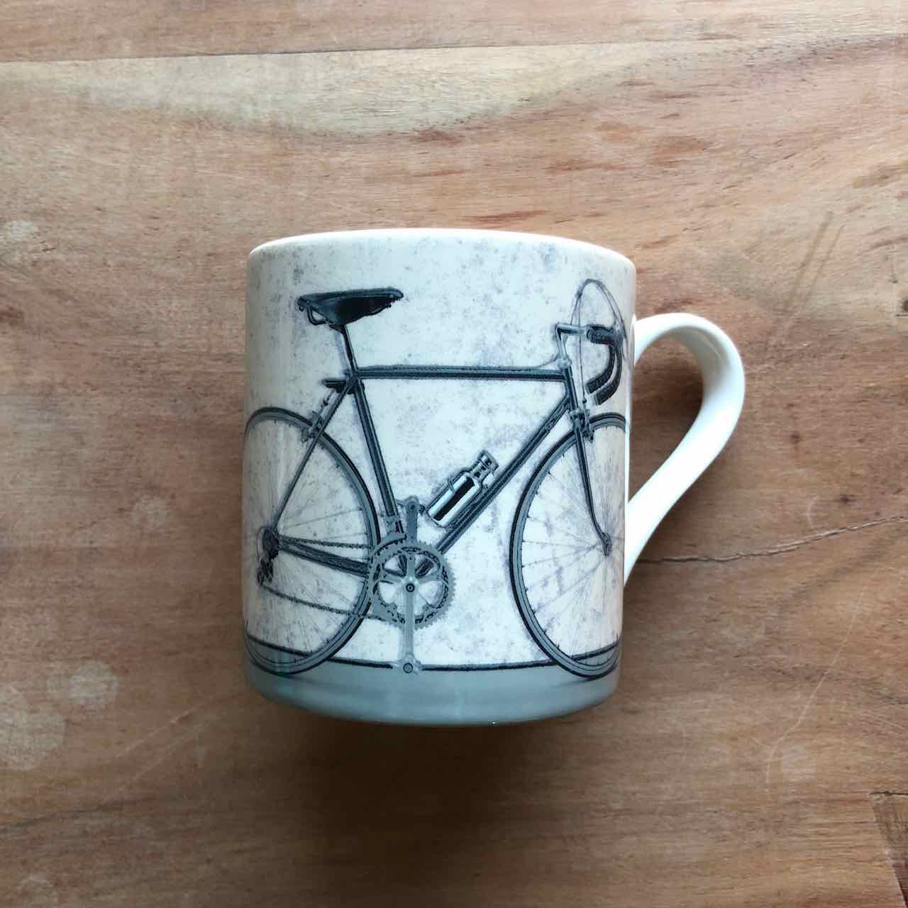 Mok van Catseye London met afbeelding van een wielrenfiets. Â Afmeting, 9×8 cm, kan in magnetron en vaatwasser.
