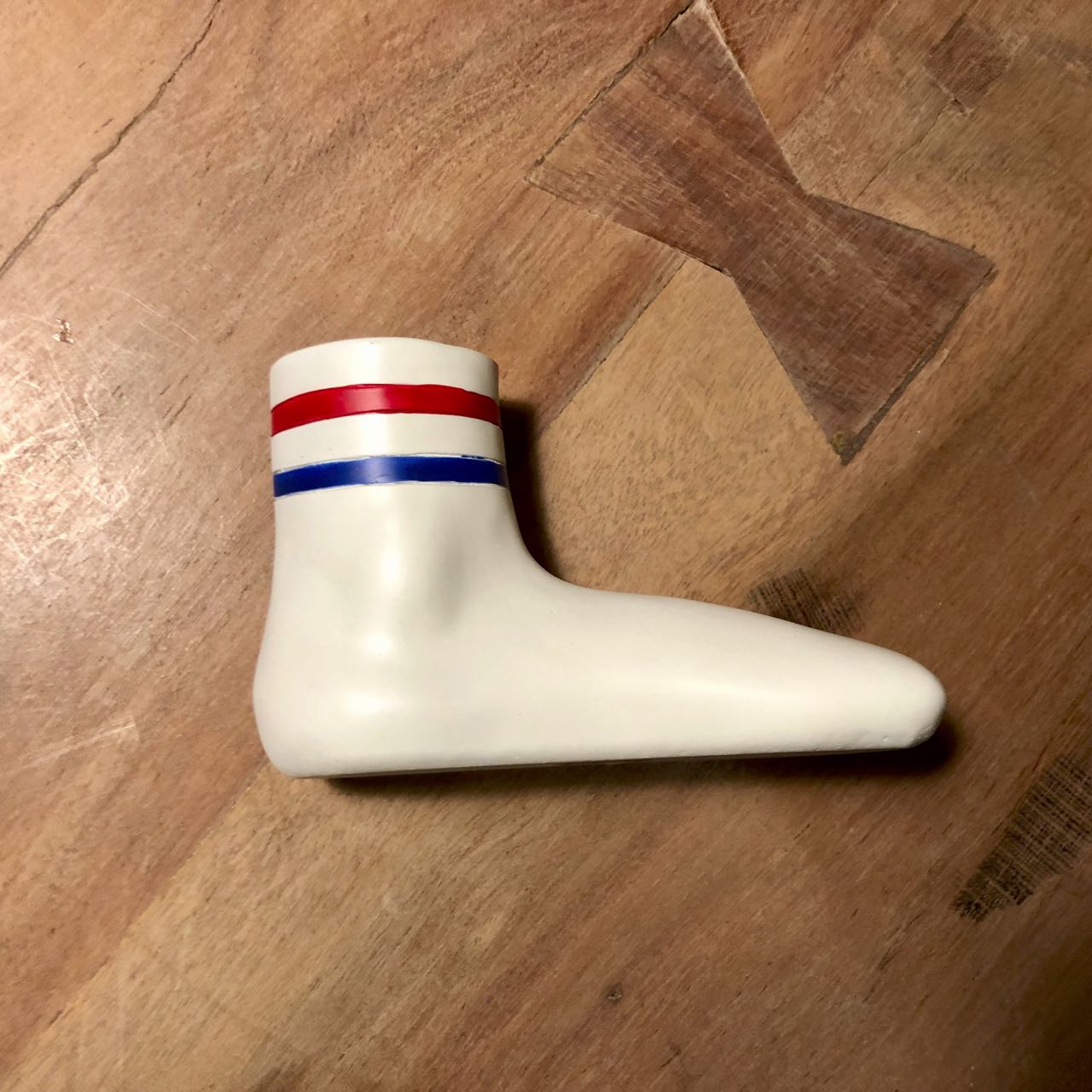 Presse-papier tennis uit de unboring sock collectie van DOIY. Materiaal: polyraisin. Formaat: 10.5 × 4.5 × 7 cm.