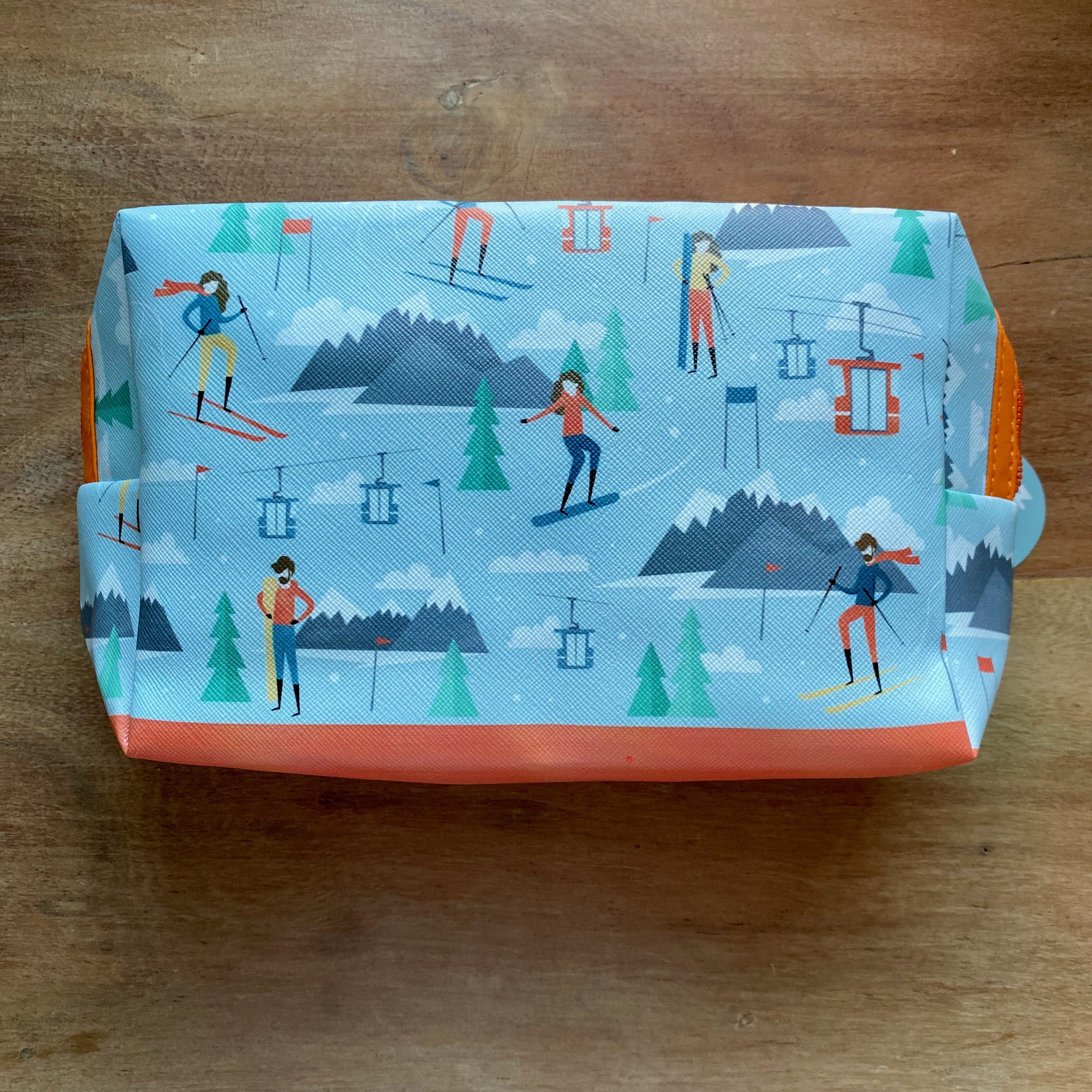 skiseizoen toilettas – skicadeau van sportcadeautjes. Toilettas met skiërs uit de Peak Season collectie van Puckator.