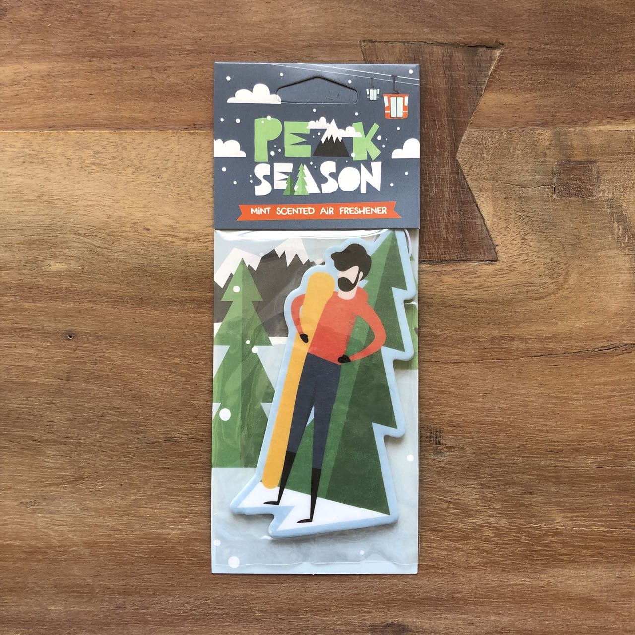 Leuke snowboarder luchtverfrisser uit de collectie van Puckator. Geeft je auto een fris geurtje op weg naar de sneeuw. Formaat: hoogte 12 cm., breedte 6 cm., diepte 0.1 cm. Materiaal: karton Geur: pepermunt Geur ingrediënten staan vermeld op de verpakking.