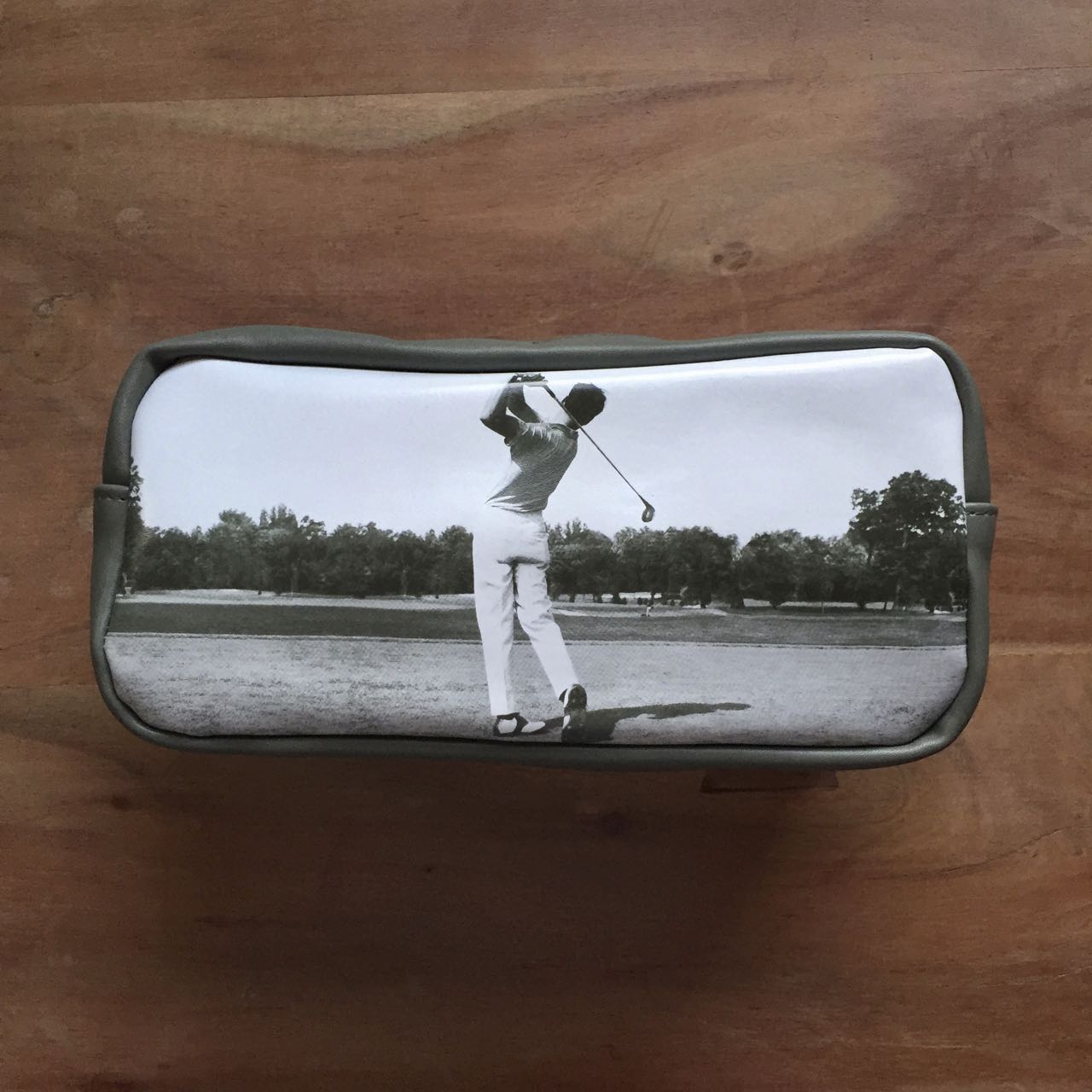 Stevige toilettas met ritssluiting met een zwart wit afbeelding van een golfer.