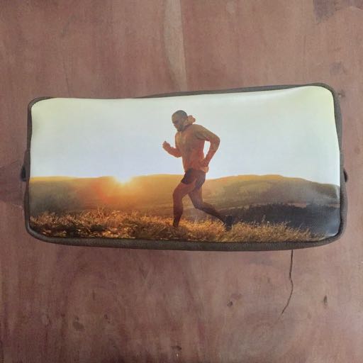 Stevige toilettas met ritssluiting van Catseye London met een vintage afbeelding van hardloper. Â Reinigen: Afnemen met vochtige doek, niet in wasmachine, droger en niet strijken.